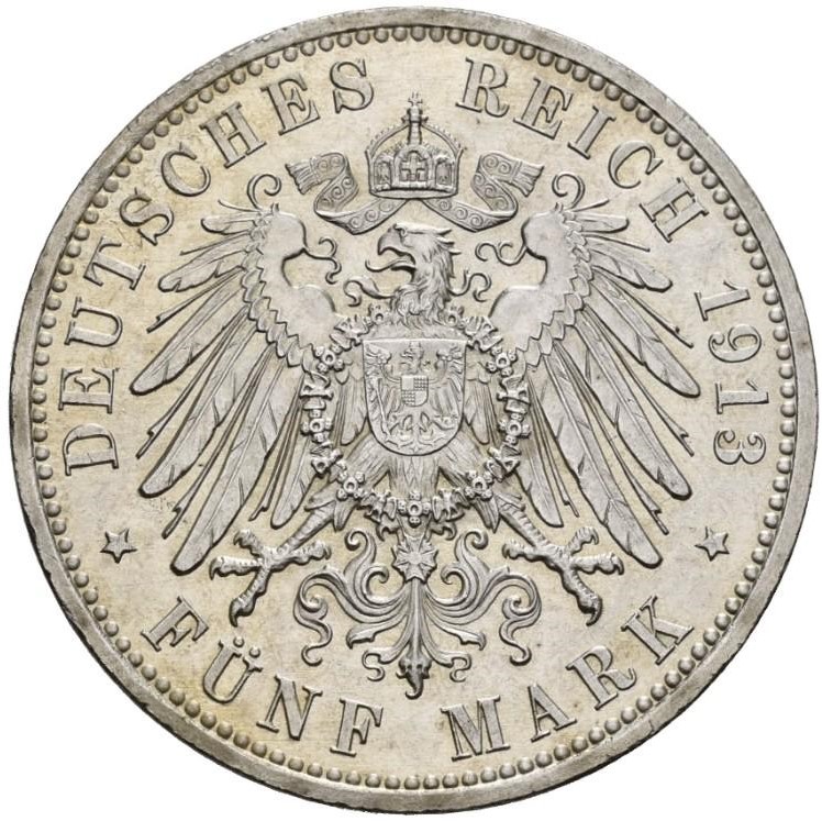 5 марок — Вільгельм II 1913 – 1913 Пруссія, Королівство