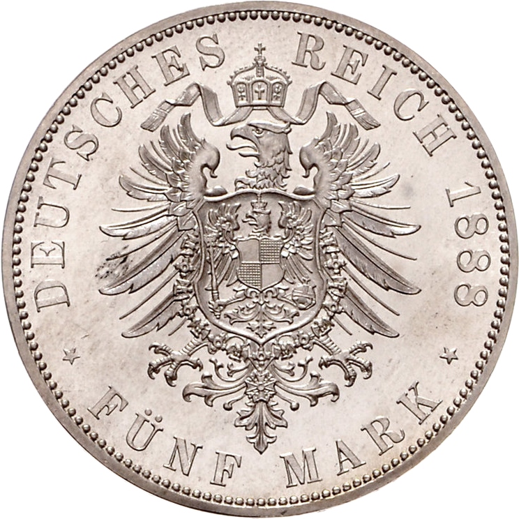 5 марок — Вільгельм II 1888 – 1888 Пруссія, Королівство