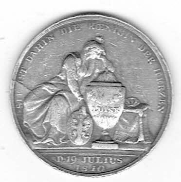 Опис: Королева, що спирається на урну (з написом «Luise») і тримає прусський щит (з зображенням прусського орла), поруч із урною стоїть стіл із короною. Дата смерті під зображенням королеви.