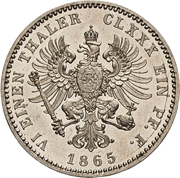 ⅙ талер — Вільгельм I 1865 – 1868 Пруссія, Королівство