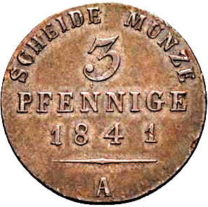 3 пфеніга — Генріх LXII 1841 – 1844 Reuss-Schleiz