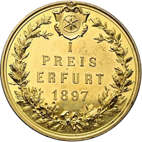 Медаль за 1-ше місце — виставка в Ерфурті «Про чистокровне розведення сріблясто-сірих вівчарок веймаранерів» 1897 – 1897 Саксен-Кобург-Гота, герцогство