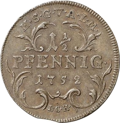 1½ пфеніга — Фрідріх III 1752 – 1761 Саксен-Гота-Альтенбург, герцогство