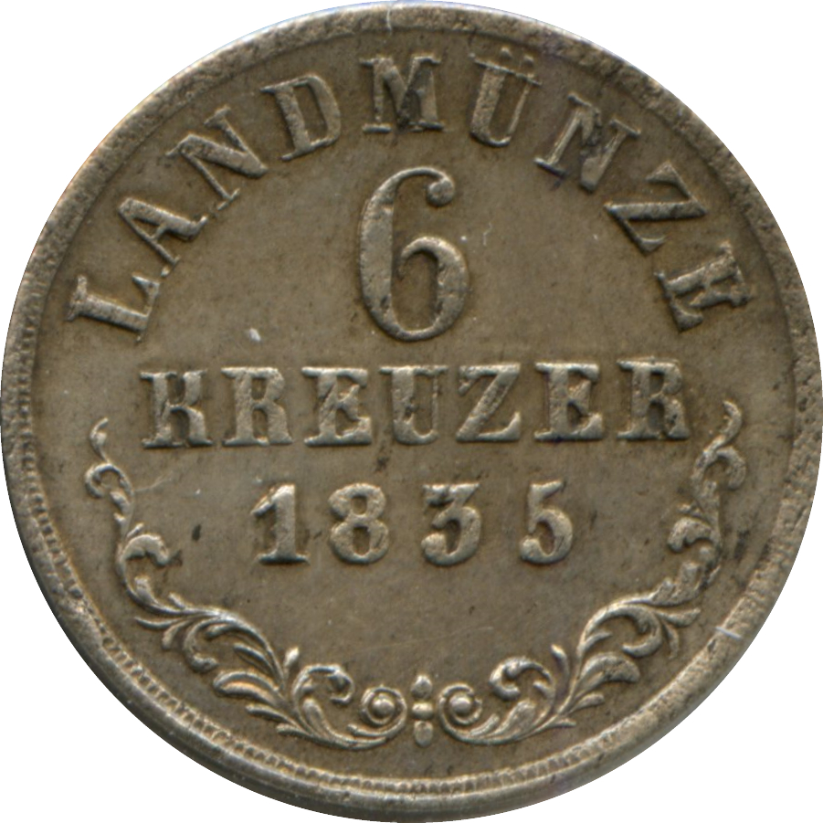 6 кройцерів — Бернард II 1831 – 1837 Саксен-Майнінген, герцогство