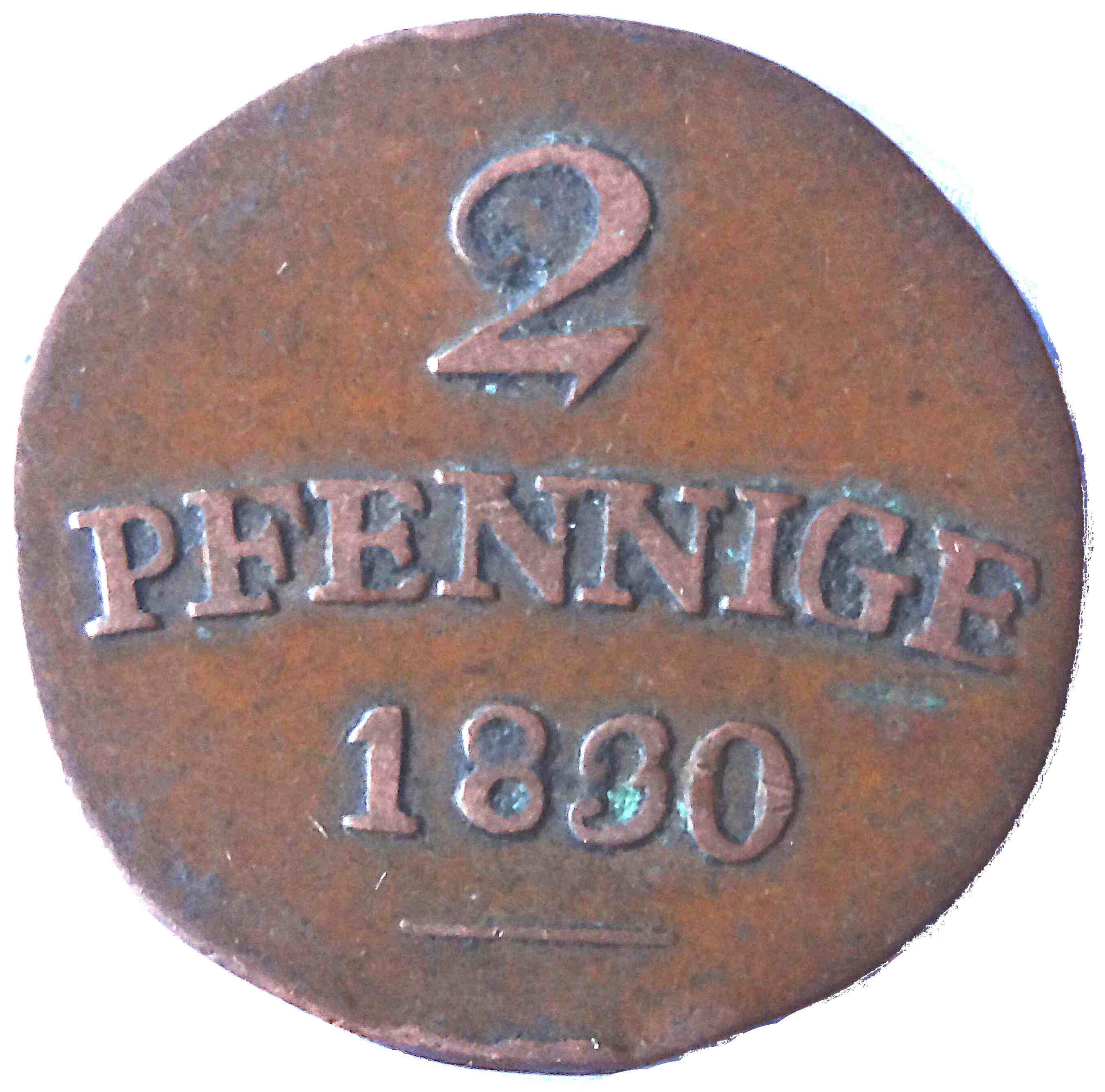 2 пфеніга — Карл Фредерік 1830 – 1830 Саксен-Веймар-Айзенах