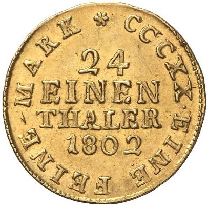 1⁄24 талер — Фрідріх Август III (золотий зразок) 1802 – 1802 Саксонія, курфюршество