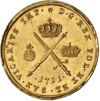 1 дукат — Фрідріх Август I (Вікаріат) 1711 – 1711 Саксонія, курфюршество