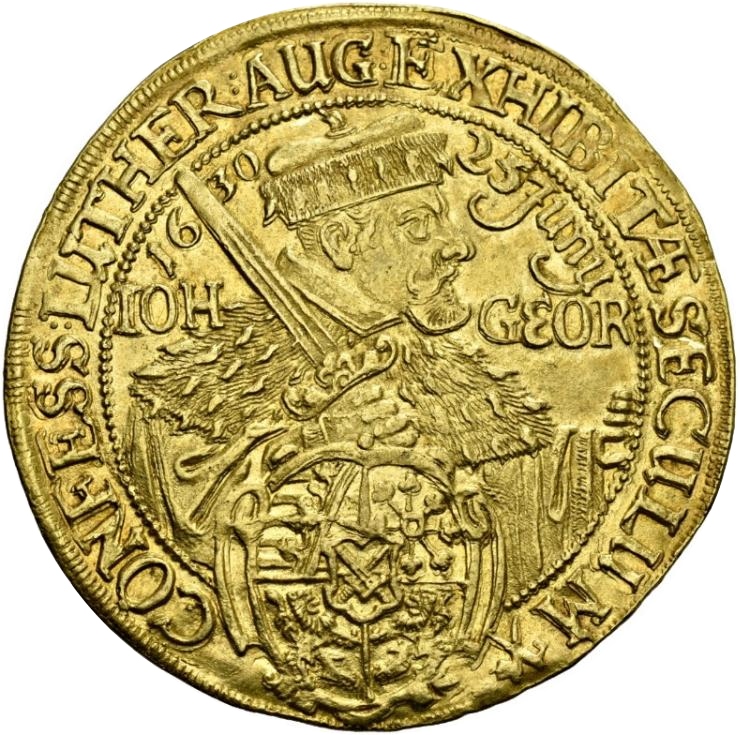 3 дукати — Джон Джордж I (Аугсбурзьке сповідання) 1630 – 1630 Саксонія, курфюршество