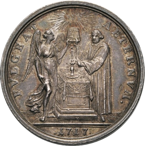 Опис: Ангел і Лютер стоять біля вівтаря, ангел тримає бушель над свічкою. Зверху — ім'я Бога на івриті, оточене променями.