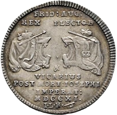 FRID: AUG: / REX ELECTOR / VICARIUS / POST MORT: IOSEPHI / IMPERAT: / MDCCXI