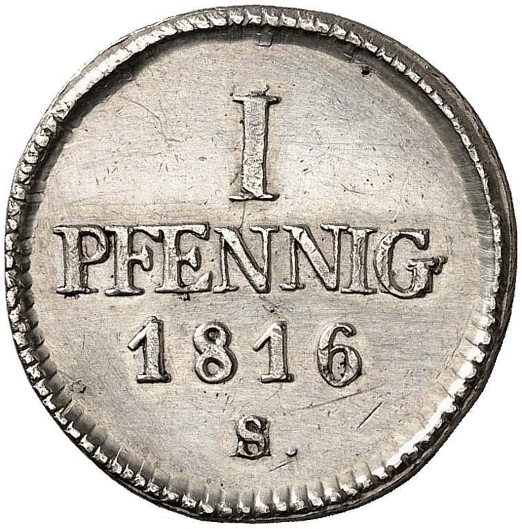 1 пфенніг — Фредерік Август I (срібний зразок) 1816 – 1816 Саксонія, Королівство