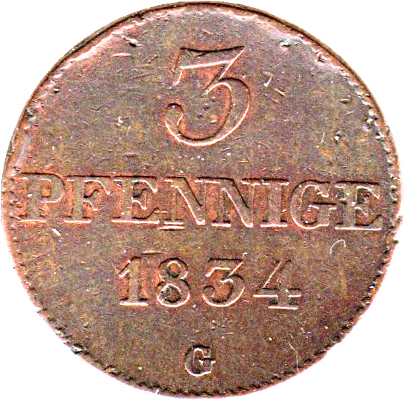 3 пфеніга — Антоній 1834 – 1834 Саксонія, Королівство