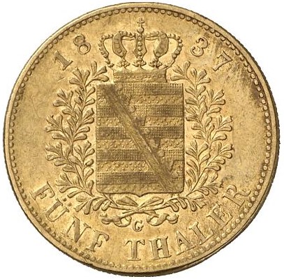 5 талерів — Фрідріх Август II 1837 – 1839 Саксонія, Королівство