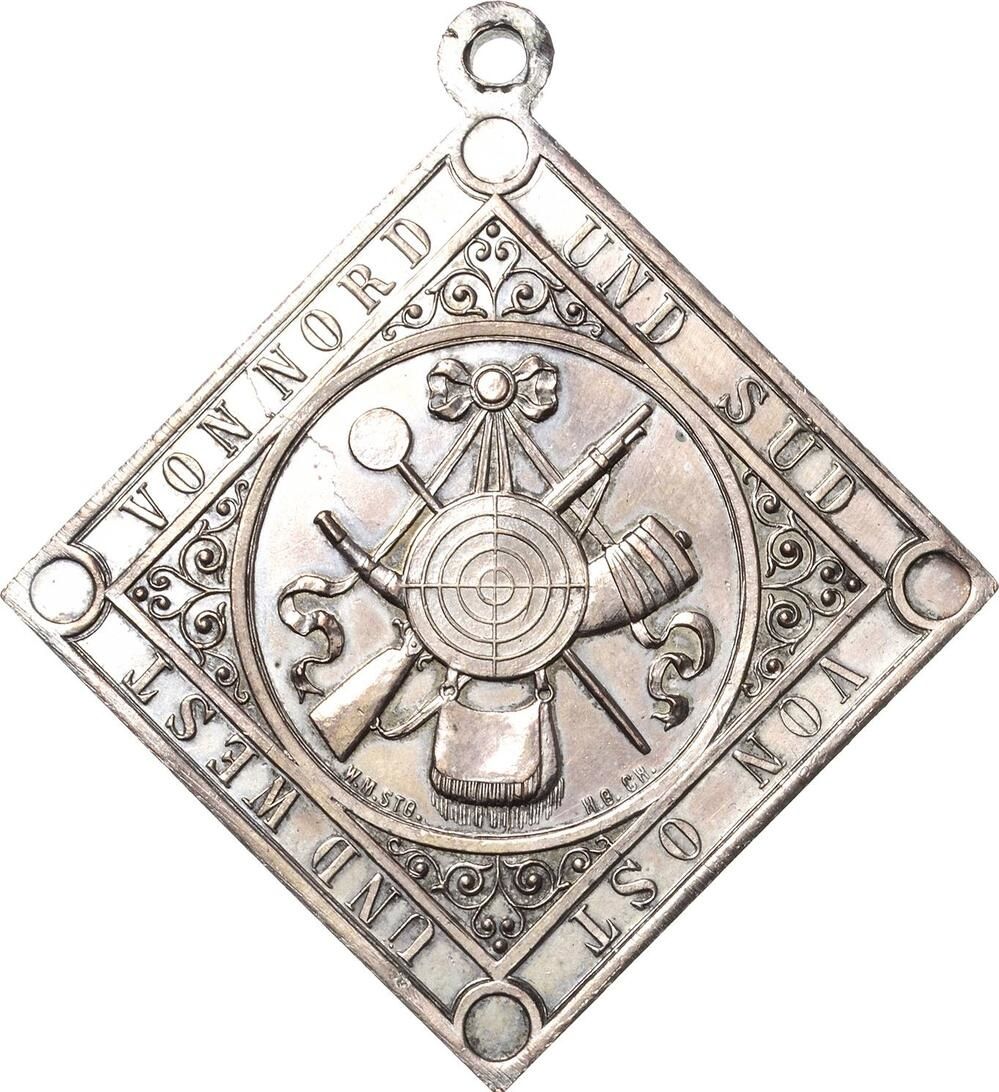 Опис: Емблеми стрільців у внутрішньому колі, арабески навколо, легенда навколо.