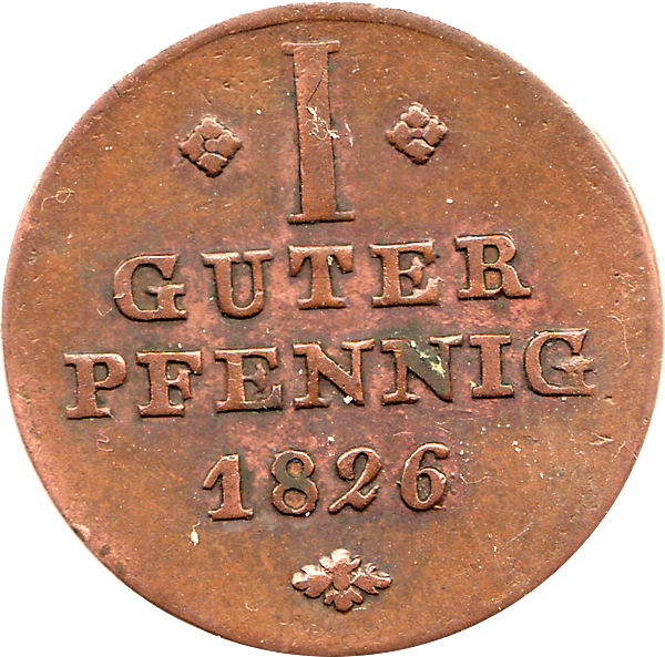 1 пфенніг — Георг Вільгельм 1824 – 1826 Шаумбург-Ліппе