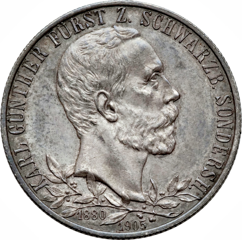 2 марки — Карл Гюнтер (Срібний ювілей; товстий обідок) 1905 – 1905 Шварцбург-Зондерсгаузен