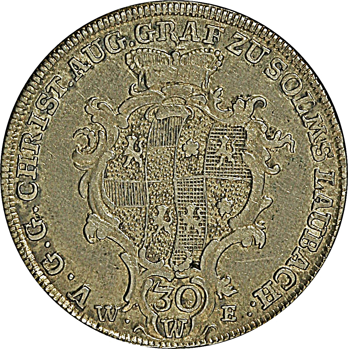 30 кройцерів — Крістіан Август 1768 – 1768 Зомс-Лаубах, округ