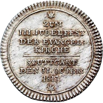 1 дукат (300-річчя Реформації; срібний зразок) 1817 – 1817 Штутгарт, місто