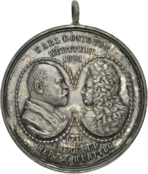 Опис: Бюсти короля Карла та герцога Еберхарда Людвіга, що дивляться один на одного, в вінку.