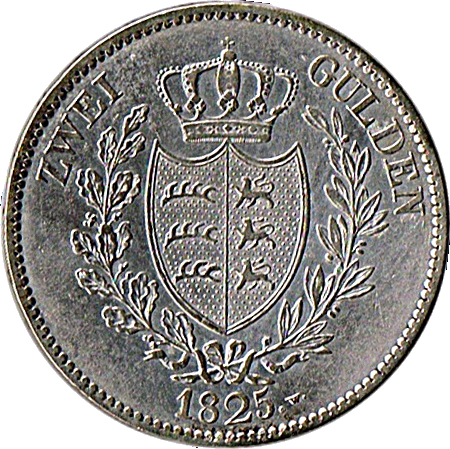 2 гульдени — Вільгельм I 1825 – 1825 Вюртемберг