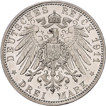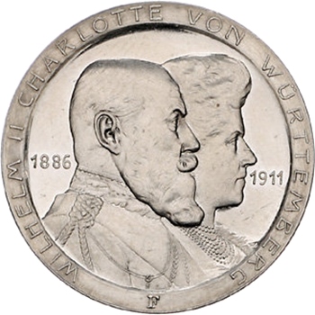 3 марки — Вільгельм II (срібне весілля) 1911 – 1911 Вюртемберг