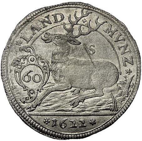 60 кройцерів — Йоганн Фрідріх (Кіппер; Гіршгульден) 1622 – 1623 Вюртемберг