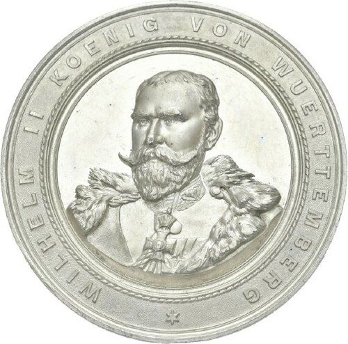Опис: Бурстбільд в уніформі та гермеліновому плащі, злегка нахилений вліво, під грудною частиною зліва та справа підписи Лицьова сторона: Напис: * ВІЛЬГЕЛЬМ II КОЕНІГ ВОН ВУРТЕМБЕРГ Підпис зліва: (ilhelm). (ayer). Підпис справа: (ermann). (ürrich). Шрифт: латинський