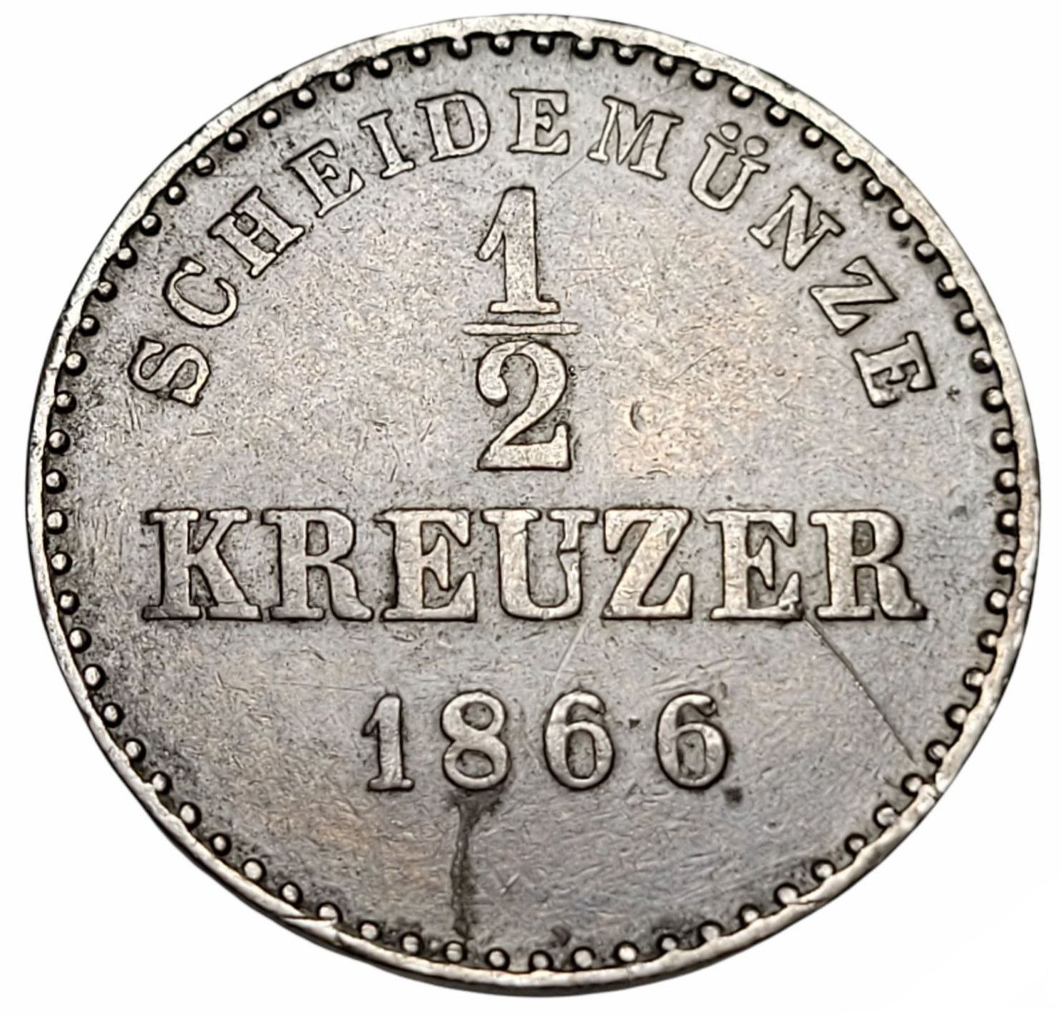 ½ Кройцер — Карл I 1865 – 1872 Вюртемберг