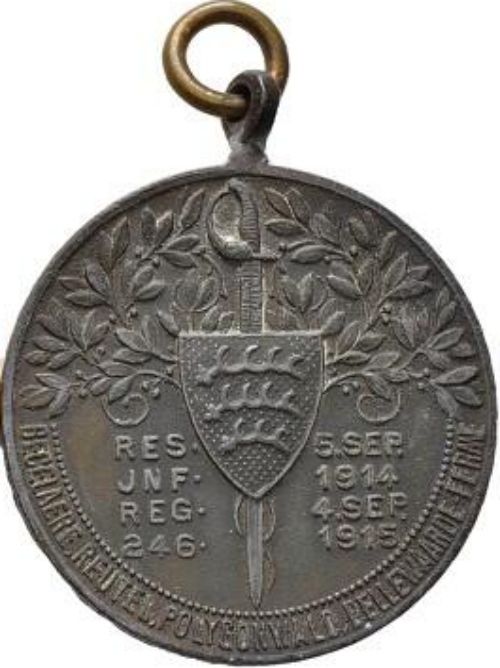Назва: Медаль — 246-й резервний піхотний полк Вюртемберга та його бої під Бецеларе, Ройтелем, Полігонвальдом і Бельварде-Ферме