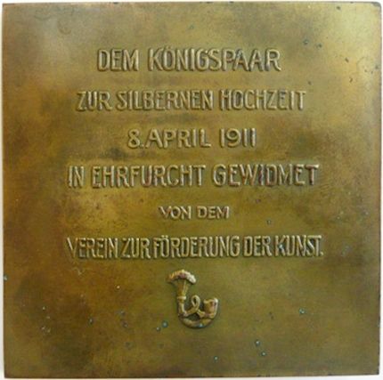 DEM KÖNIGSPAAR / ZUR SILBERNEN HOCHZEIT / 8. APRIL 1911 / IN EHRFURCHT GEWIDMET / VON DEM / VEREIN ZUR FÖRDERUNG DER KUNST.