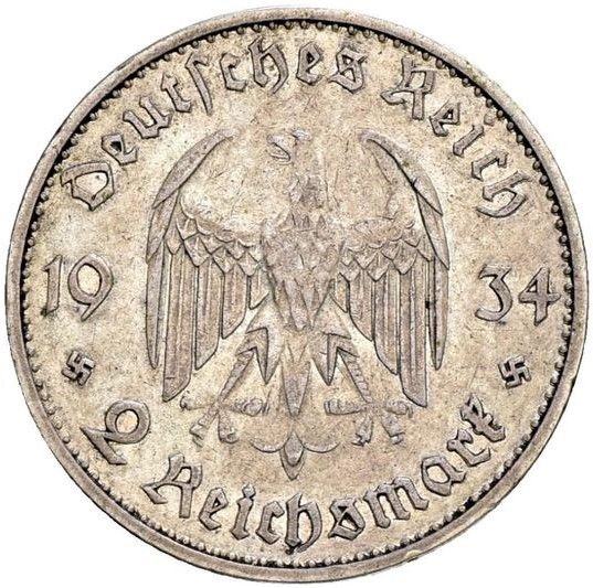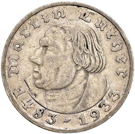 2 рейхсмарки (Мартін Лютер — Мул) 1933 – 1933 Німеччина