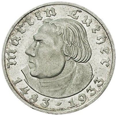 2 рейхсмарки (Мартін Лютер — зразок) 1933 – 1933 Німеччина