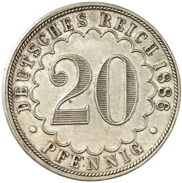 20 пфеннігів — Вільгельм I (зразок) 1886 – 1886 Німеччина