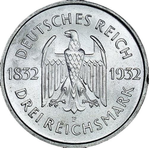 3 рейхсмарки (Ґете) 1932 – 1932 Німеччина