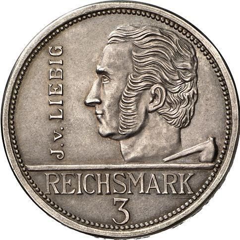 3 рейхсмарки (Юстус фон Лібіх — зразок) 1927 – 1927 Німеччина