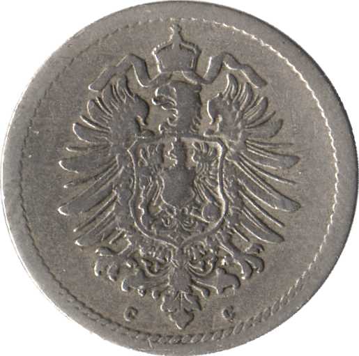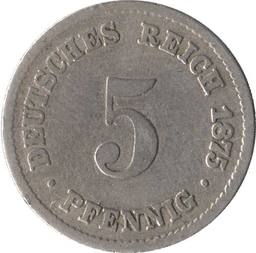 5 пфеннігів — Вільгельм I (тип 1 — великий щит) 1874 – 1889 Німеччина