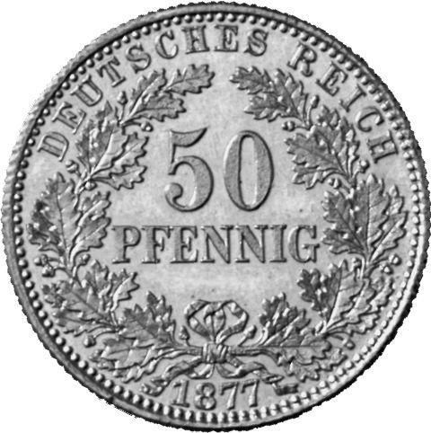 50 пфеннігів — Вільгельм I (тип 1 — великий щит — зразок) 1877 – 1877 Німеччина
