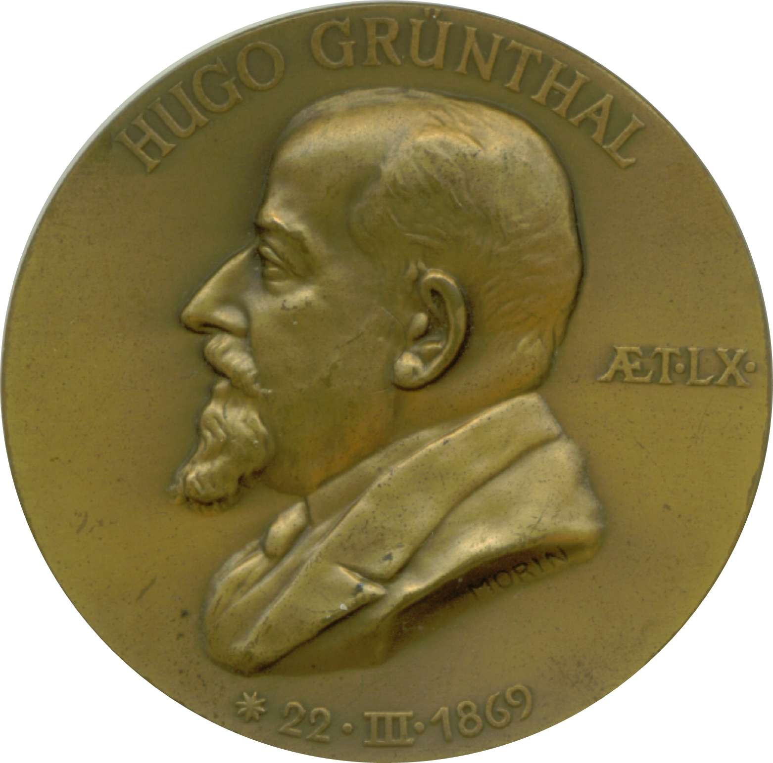 Опис: Бородатий бюст видатного берлінського професійного нумізмата ліворуч, дата народження *22. III. 1869 нижче