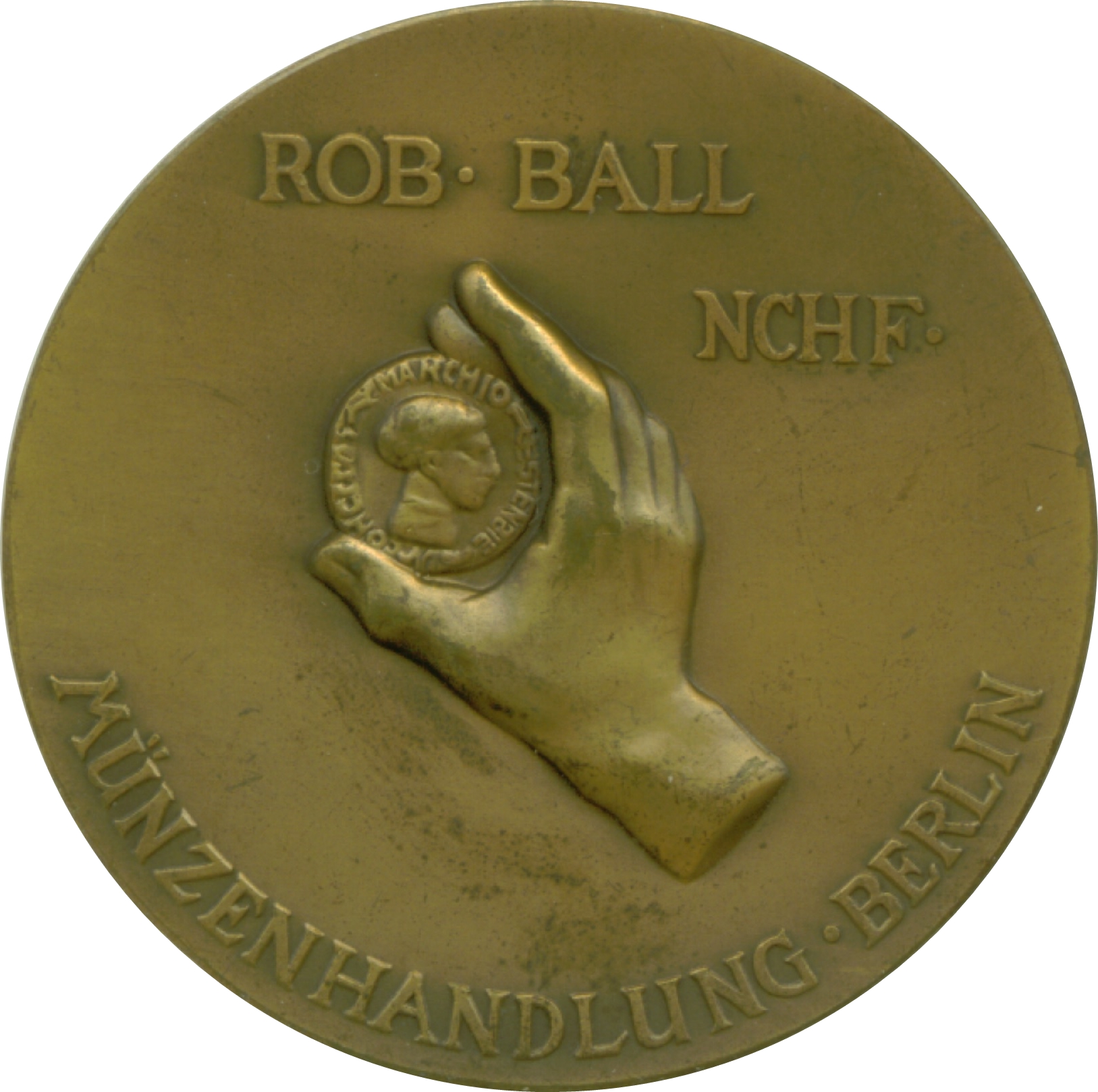 Опис: У руці тримають медаль епохи Відродження Сігізмондо Малатеста, назва нумізматичної фірми ROB. BALL/ NCHF., Robert Ball Successors, яка пізніше належала Grünthal.
