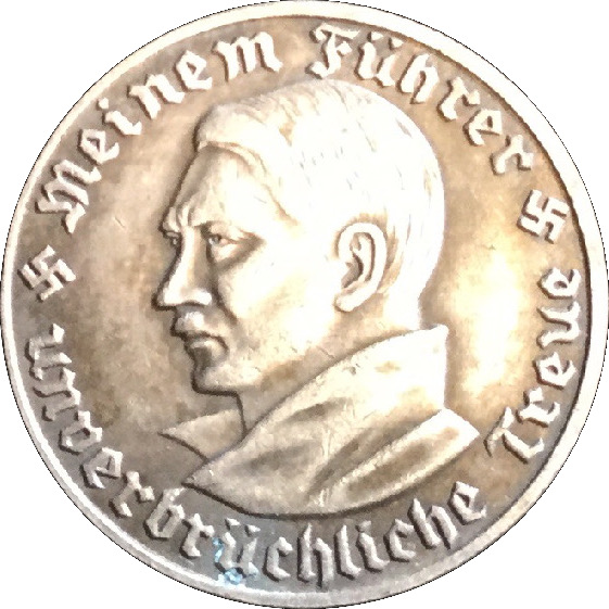 Опис: На аверсі, стороні монети, зображено профіль Гітлера. Над головою написано слова «Meinem Führer». Під головою написано слова «unverbrüchliche Treue». Обидві фрази розділені свастикою з кожного боку.