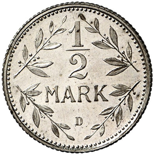 Назва: ½ марки — Вільгельм II (тип 2 — малий щит — зразок)