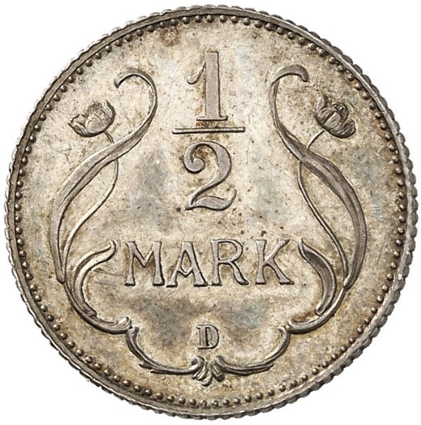 Назва: ½ марки — Вільгельм II (тип 2 — малий щит — зразок)