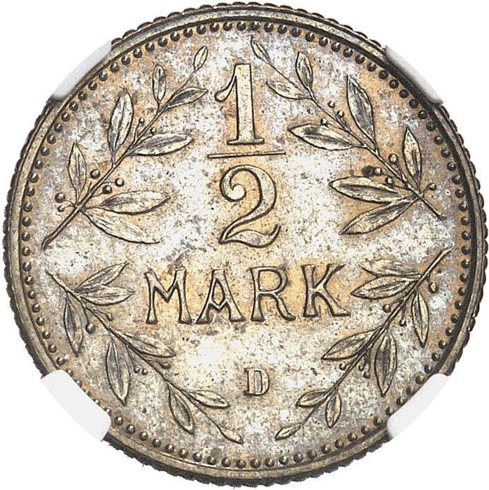 Назва: ½ марки — Вільгельм II (тип 2 — малий щит — зразок)