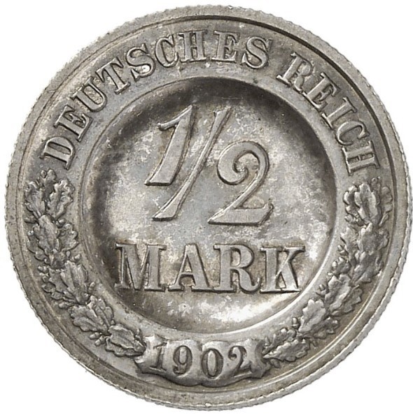½ марки — Вільгельм II (тип 2 — малий щит — зразок) 1902 – 1902 Німеччина