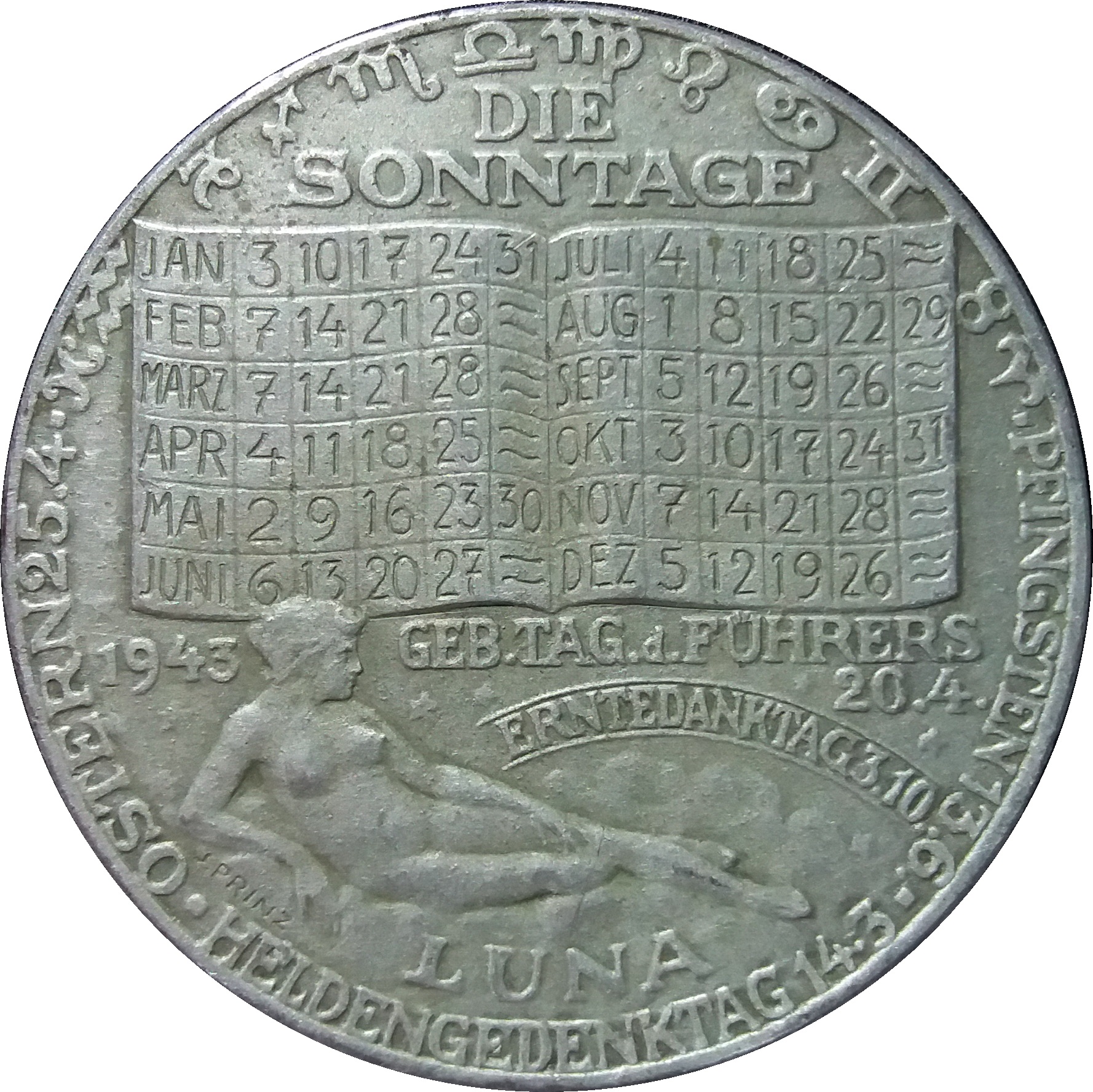 Опис: Дванадцять знаків зодіаку біля краю у верхній частині монети.