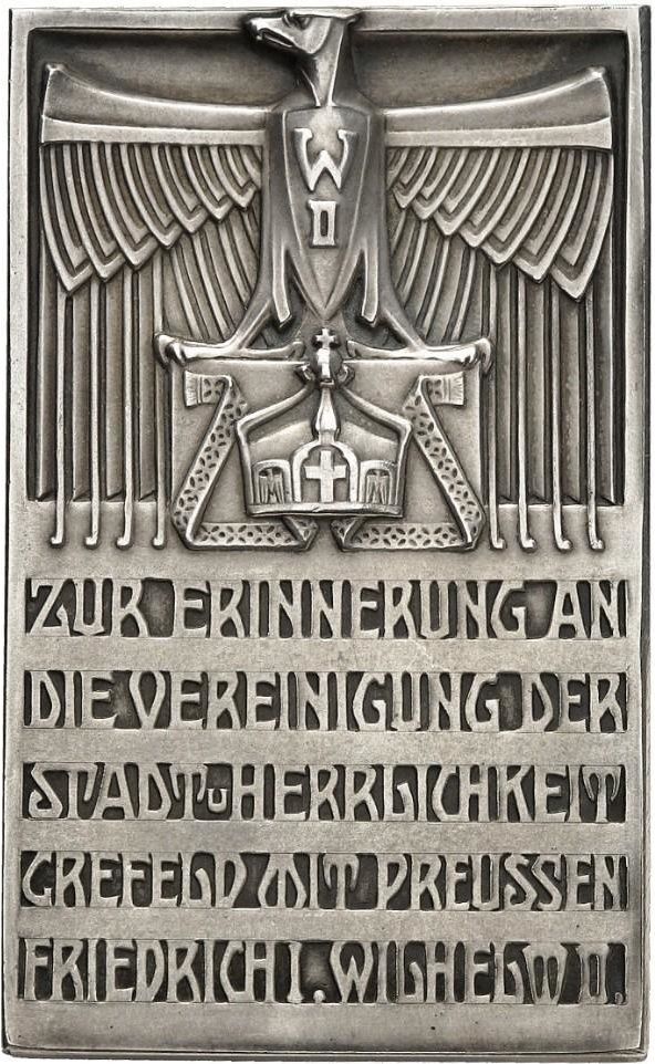 Назва: Плакетка — 200 років об'єднання міста Крефельд з Пруссією