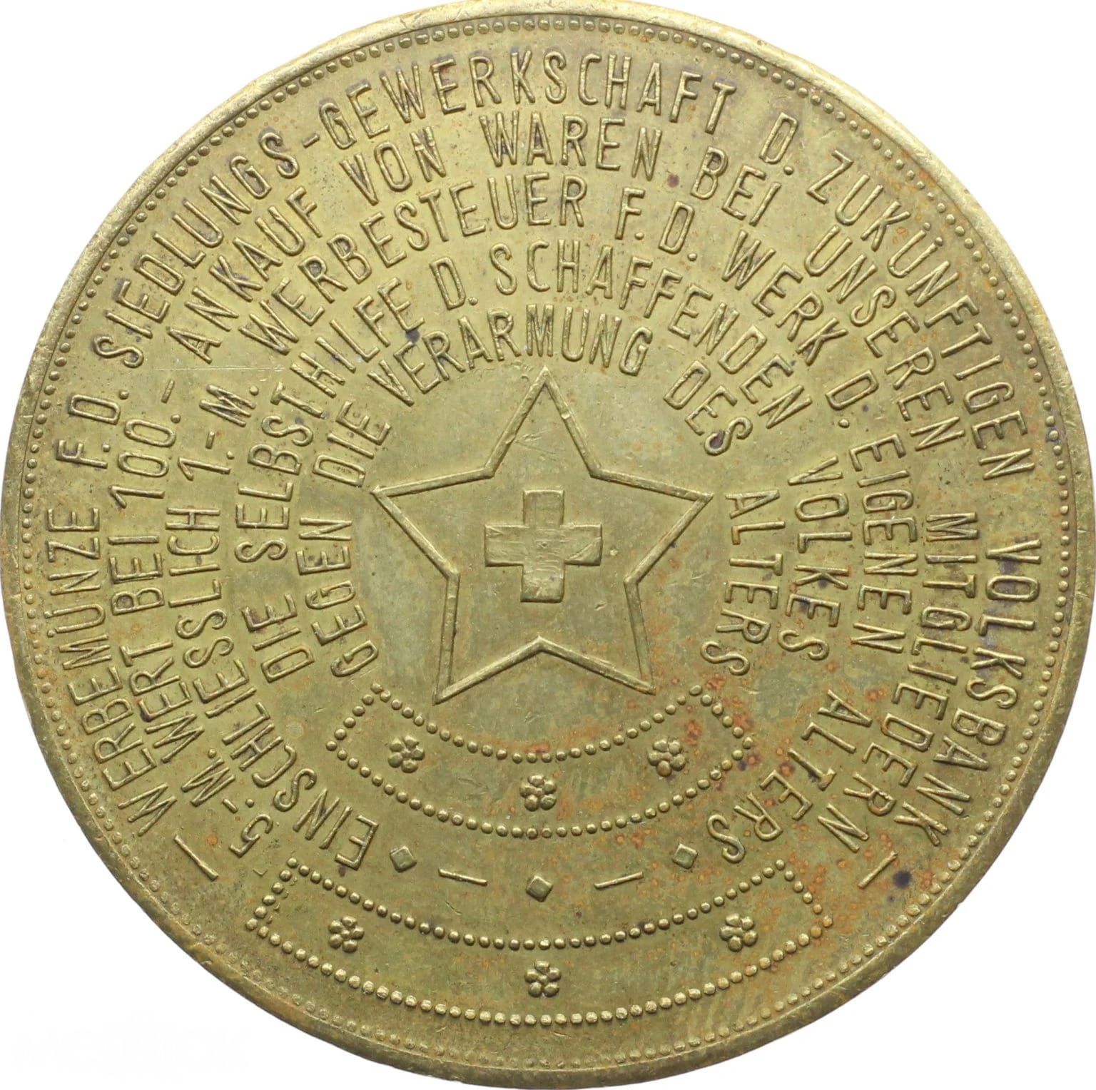 WERBEMÜNZE F.D. SIEDLUNGSGEWERKSCHAFT D. ZUKÜNFTIKEN VOLKSBANK