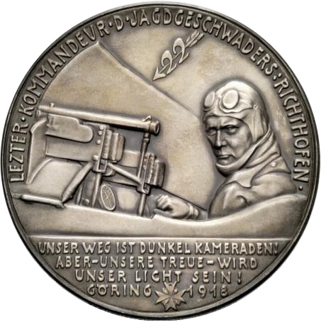 Опис: Молодий Герінг у літаку Fokker, стрілка зверху з цифрою 22 (вказує кількість збитих ворожих літаків).