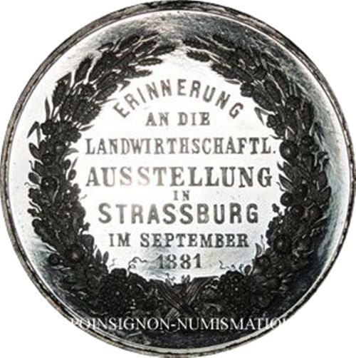 Сувенірна медаль сільськогосподарської виставки Ельзас-Лотарингія (Страсбург) 1881 – 1881 Німеччина