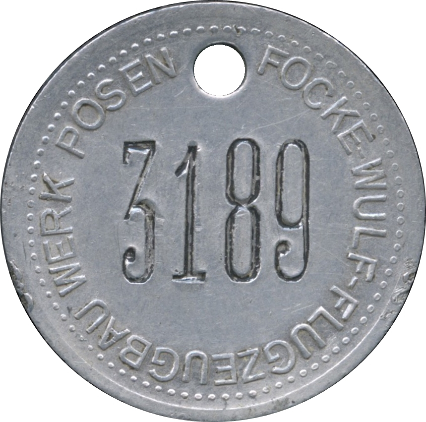Жетон — Focke-Wulf Flugzeugbau (Познань) 1941 – 1944 Німеччина
